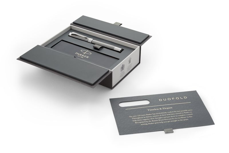 Ручка роллер Parker Duofold Prestige Ruthenium Chiselled CT от официального дилера Parker в Элисте. Вы можете дополнительно заказать гравировку, которая подчеркнет Вашу оригинальность и придаст памятность статусному подарку. Все ручки Паркер поставляются в фирменном футляре.