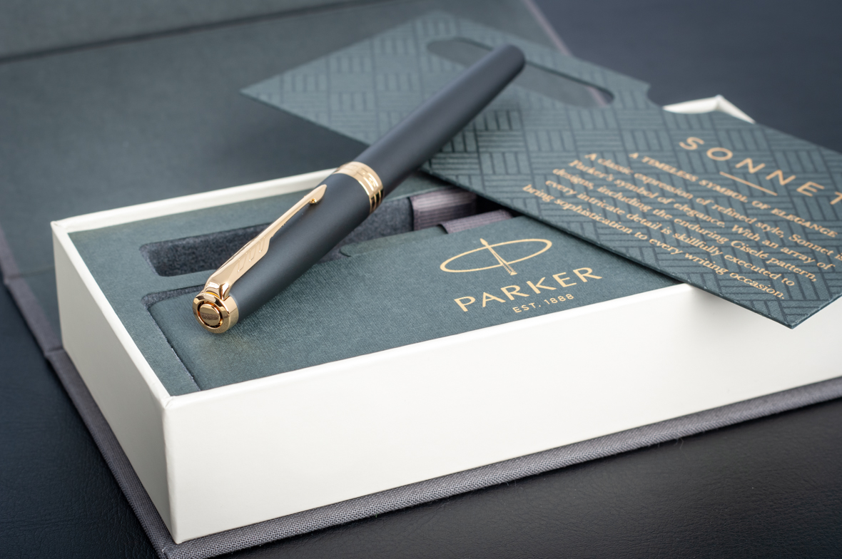 Перьевая ручка Parker Sonnet Matte Black GT от официального дилера Parker в Элисте. Вы можете дополнительно заказать гравировку, которая подчеркнет Вашу оригинальность и придаст памятность статусному подарку. Все ручки Паркер поставляются в фирменном футляре.