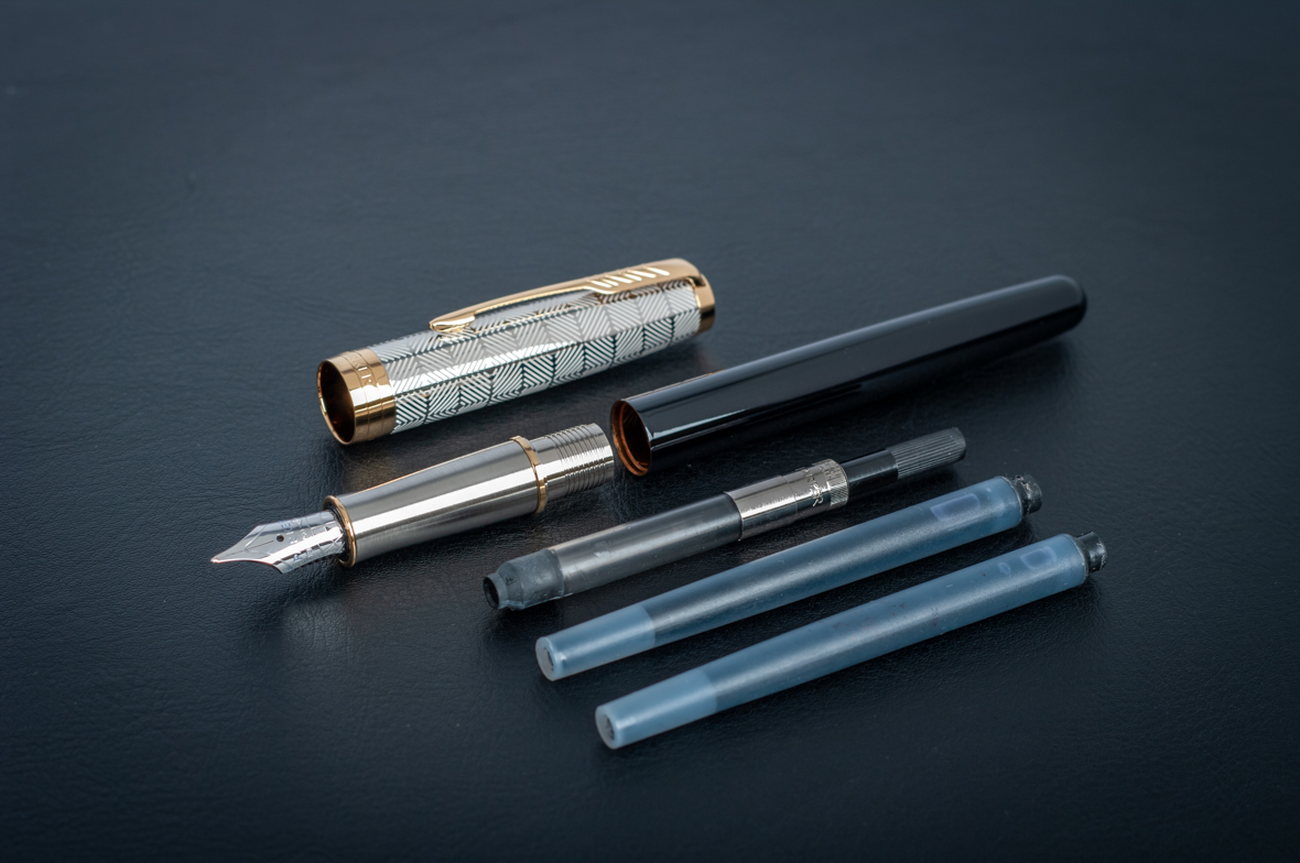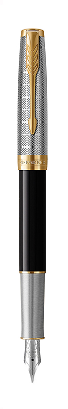 Ручка перьевая Parker Sonnet Premium Metal Black GT M от официального дилера Parker в Элисте. Вы можете дополнительно заказать гравировку, которая подчеркнет Вашу оригинальность и придаст памятность статусному подарку. Все ручки Паркер поставляются в фирменном футляре.